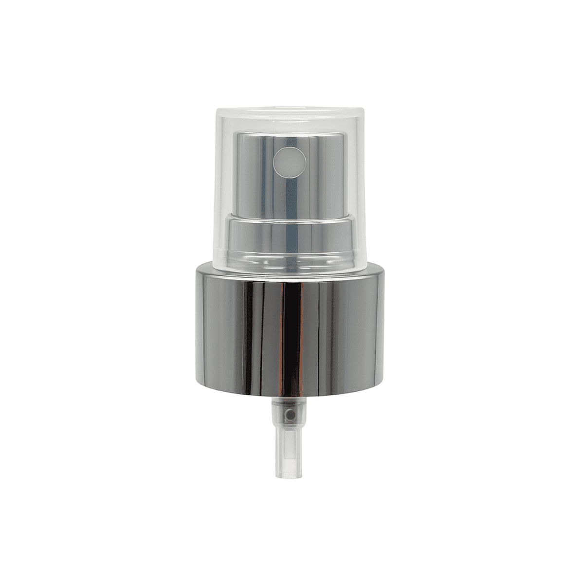 Elegancka, srebrna końcówka typu spray, kompatybilna z opakowaniami o gwincie 24/410.